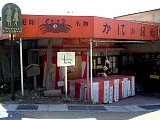 {左}かにが坂飴 高岡孝商店 土山町南土山1301 国道を渡るとある。蟹塚を造った恵心僧都が蟹の甲羅を模した飴を作り竹皮に包み里人に授け厄除けにするよう言い残したことが起こり。供養された蟹の血が自然に8つの飴となったとも伝わる。飴はこの付近の名物となり東海道名所図会にも蟹坂付近に「丸き飴を売る家多し」と記された。麦芽糖(地黄煎)を長時間煮て冷ましてコイン大に固めた飴は現在は昭和末期から近隣住民で構成される八ツ割飴協同組合により手作りで作られている。商店はその製造場所兼販売元だが店舗としては田村神社の厄除祭(2月17-19日)の3日間しか開店せず普段は道の駅 あいの土山でのみ販売。1袋小400円大750円竹皮包1000円。店前には由来が記載された木看板、付近の地図、「歴史の道 東海道」金属製立札もある。 |