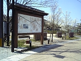 {左}生里野(いくりの)公園 右折するとすぐ左に大きな宿場案内地図がありその後ろが平成15年に整備された小公園となっている。中央は小さなグラウンドとなっており周りにベンチや遊具がある。公園前右角の植込みには若い松と「東海道 土山宿」碑もある。公園を過ぎる茶畑となりその先の両側が民家となる右には昭和56年「東海道 土山宿」石柱。すぐ先の民家には「東海道土山宿 要志屋」屋号札がある。他の家の玄関にも昔の屋号が書かれた札がある。平成2年に青年団や商工会のメンバーらが中心となって発足した土山の町並みを愛する会が設置したもので他にも旅籠跡を示す石柱、土山を詠んだ漢詩、和歌、俳句碑なども設置している。 |