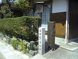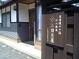 {右}お六櫛商 三日月屋 しばらく進むと左のカーショップ・ベストセラー(南土山59)向かいの民家に「東海道土山宿 お六櫛商 三日月屋」屋号札がある。櫛は土山宿の名物でこの付近の幾野(現:生里野)には十数戸の櫛屋が軒を連ねていた。「お六櫛」は中山道の薮原宿(現:木曽郡木祖村薮原)の名産でもあり元禄12年(1699)木曽から伊勢参り後に京都見物して帰る旅人が病に倒れ土山の大森家に助けられため無事帰国後に礼にと「お六櫛」を販売用に贈り大森家が売り始めたのが起こりと言う。薮原宿の「お六櫛」はお告げで櫛を使っていたら病が治ったという娘・お六が由来で現在でも薮原で作られている。土山で病人を看病したのがお六さんと言う説もある。この先にも「お六櫛商 三日月屋」屋号札を掲げた家が何軒かある。 |
