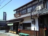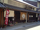 {左}民芸・茶房 うかい屋 土山町南土山328 斜め向かい。江戸時代には高利貸だった菱屋の建物で江戸中期築とされる。「質 菱屋跡」屋号札もある。戦後に鵜飼家が買取り改造し平成5年に喫茶食事処として開店した。鴨南蛮(850円)は「街道で2番目に美味しい」との記録があるが詳細不明の土山名物「夕霧そば」を目指して考案した。抹茶セットやぜんざい等の甘味もある。主人・鵜飼秀郎は歴史の道 東海道宿駅会議の常任理事、東海道ネットワークの会21の関西ブロック長で毎年行なわれる東海道五十三次シンポジウムの初代実行委員長。店内には東海道に関する本、パンフレットなど東海道関連の資料も置いてあり陶芸などの民芸品を売るコーナーもある。10時-18時、不定休。向かいには共に平成3年建立「はた屋」「万屋」石柱がある。 |