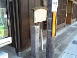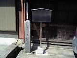 {左}二階屋脇本陣跡 うかい屋の1軒挟んだ先の民家前に昭和56年建立の石柱がある。天保14年(1843)の記録には土山宿に脇本陣はなかったが往来が多くなったため幕末頃に堤家が営む旅籠・二階屋が脇本陣となった。 |