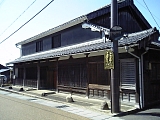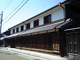 {右}土山本陣 道を挟んだ隣の建物。建物左前に昭和56年建立の「土山宿本陣跡」石柱と平成3年設置の説明立札がある。甲賀53家の土山城主・土山鹿之助の子孫にあたる土山喜左衛門が寛永11年(1634)3代家光上洛の際に本陣に任命されて以降明治までつとめた。現在も子孫の土山家が住んでいる。建物は1階が格子、2階が黒漆喰塗りの壁で中には上段の間、裏には庭園も残っている。関札、宿帳、工芸品なども現存し宿帳には勝海舟など幕末の志士の名前も見られる。熊本藩細川家の御用達でもあり細川家ゆかりの調度品も伝わる。入館料300円(要予約)。向かいには平成3年「俵屋」石柱がある。 |