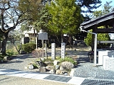 {右}高札場跡 公園内の問屋場跡石柱の左に昭和56年建立の石柱がある。土山宿の高札場は2箇所にありそのうちの1つがこの付近にありもう1つは田村神社手前にあった。高札場は桁行5m幅1.8m高さ3mで明治7年(1874)廃止された。公園奥左には「巖稲荷神社跡」石柱があり正面奥に松や社殿の台座が残る。一の松通り側には「弥生松」という名の付いた松もある。その手前には京都東山の芭蕉堂主・高桑闌更(らんこう)が詠んだ平成19年建立の句碑「土山や 唄にもうたう はつしぐれ」と説明立札もある。闌更は享保11年(1726)加賀国金沢(現:石川県金沢市)の商家・釣瓶屋に生まれ諸国遊歴後に京都に住み後に東福寺や南禅寺の管長となる常明寺15世の松堂慧喬(虚白)の俳句の師匠でもあった。 |