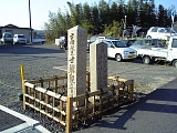 {左}林羅山漢詩碑 土山町南土山406 左に平成3年「山形屋」右に平成3年「近江屋」左に平成3年「山田屋」と石柱が続き土山中央公民館(土山公民館)の建物右前に平成11年建立の碑、説明立札がある。朱子学者・林羅山が江戸から京都へ向かう元和2年(1616)34歳の時に土山で詠んだ詩で「行李東西久旅居 風光日夜憶郷閭 梅花繋馬土山上 知是崔嵬知是岨」とある。収録している紀行文「丙辰紀行」には前文に「釋詁毛傳などに石山を土の山とよみ、土山を石の山とよむことを思いて」とあり土山とはどんな石の山なのか疑問に思う心情を詠んだ。公民館には「東海道あいの土山宿お休処」木看板、道路側には平成10年「宿場のけごみ」石柱もある。 |