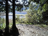 野洲川(やすがわ) 川に突き当たり舗装が途切れる所で左折し林の中に入り少し先右に警報局の石段を過ぎ右にカーブし下りてすぐ左にカーブする付近で東海道は本来は直進していた。野洲川は江戸時代は松尾川、松野尾川、松の尾川と言いここには水量の少ない10月から2月は木橋または土橋が架かり3月から9月は松尾の渡しの舟や徒歩で渡った。江戸中期の国学者・丹羽桃丸の著書「蜻蛉の道艸」の挿絵には松の尾川に架かる木橋が描かれている。現在は橋がないため分断の案内板がある十字路まで戻りトラバースロードで国道1号に出て右折し昭和35年竣工の白川橋で川を渡る。渡ってすぐ右折ししばらく行くと十字路で東海道の続きと交差し右に鈴鹿馬子唄石碑がある急な下り坂を右折して行くと対岸の河原となる。 |