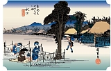 水口宿 本陣1脇本陣1旅籠41家数692人口2692[天保14年(1843)] 平安時代に伊勢大路が通ると伊勢参りの人々が往来するようになり室町時代には宿村となった。天正13年(1585)古城山に岡山城が築城されると山麓の集落は城下町となり江戸時代に宿場に指定され3代将軍家光が水口城を築くと城下町と宿駅としての両面で栄えた。町並は東西2km余りで通りが3つある三筋町(みすじまち)となっており現在もその道筋が残り江戸時代の町名を刻んだ石柱も設置されている。名物は干瓢、葛細工、煙管、泥鰌汁などで干瓢造りの様子は広重も描き現在でも特産品。水口神社(水口町宮の前3-14)祭礼の水口曳山祭も有名で現在も16基の曳山を保管する曳山蔵が点在する。 |