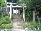 {右}五十鈴神社 水口町東林口4-18 少し先右に慶円寺が管理する御茶園墓地公園入口がありしばらく進むとある。鳥居は木製で右前の昭和10年(1935)建立の神社名石柱は多賀大社宮司・大和田貞策書。鳥居前の灯籠は左が元治元年(1864)右が明治のもの。鳥居くぐった左に「水口町の古木・名木」のヒノキ、右に杉と鉄棒。境内左に手水石と井戸跡、市杵姫神社。社殿右に五十鈴会館、社殿左に境内社の秋葉神社、愛宕神社、八坂神社、稲荷神社がある。 |