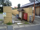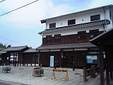 {右}中部コミュニティセンター・新水口宿公園 水口町八坂7-4 少し先にある。この地区に旅籠や商家が多かったことから商家の蔵をイメージした建物で中には曳山も展示されている。センター横には広重の水口宿の絵もある。センター裏の新水口宿公園は門、格子窓の木塀、四阿で囲まれた東海道をテーマにしたポケットパークとなっており平成7年度国土交通大臣表彰手づくり郷土賞コミュニティ部門受賞。センターから少し進むと左の滋賀県信用組合本店(水口町八光2-45)前に丸ポストがありすぐ先には「河内町」石柱もある。 |