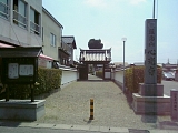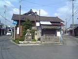 {右}日風寺 [本門仏立宗] 水口町元町8-21 少し先の元町交差点で国道307号を歩道橋で横断すると右に「松原町」石柱があり少し進むとある。普通の民家のような敷地で本堂は2階建コンクリート平屋。本堂右に灯籠と昭和25年(1950)建立「日旺上人頌徳碑」がある。 |