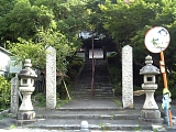 {右・寄}秋葉神社 秋元寺境内左の道路を渡った先にある。水口宿は江戸時代に3度の大火があり明和7年(1770)火防を願って静岡県の秋葉神社(浜松市天竜区春野町領家841)の前身である秋葉大権現を勧請し創建された。祭神は火之迦具土大神。石段下左の道路沿いに説明碑がある。石段途中右の神社名石柱は昭和13年(1938)。石段途中に鳥居。登った正面に「三尺坊」扁額がかかる堂。その前を右折しさらに80段ほど石段を登ると昭和10年灯籠、明治33年(1900)鳥居があり「秋葉神社」扁額がかかる社殿が左にある。その前にある狛犬、灯籠は平成3年。さらに社殿の左へ登る丸木で作った階段があるが少し先で藪になっている。 |