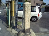 {右}林口一里塚(113) 神社の先で突き当たりとなり角に再現された塚と石柱、説明碑がある。本来は手前の神社境内東端にあったが明治25年(1892)に撤去された。元禄3年(1690)東海道分間絵図には左右とも榎1と記録されている。宝暦2年(1752)東海道分間絵図には左塚はなく右塚のみ榎1とある。寛永11年(1634)水口城が築城され東海道が迂回するまではここよりも南を通っていた旧道沿いにあった。東海道は突き当たりを左折し少し先の右にひまわり薬局水口店(水口町西林口4-15)がある交差点を右折する。この交差点で寛永11年以降迂回していた東海道が元の道に戻る。 |