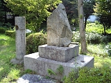 {左・寄}巌谷一六先生旧居跡(現:冨永社会保険労務士事務所) 水口町城東5-42 十字路を左折して行くと平成9年巌谷春聲揮毫の石柱がある。一六は本名は修と言い天保5年(1834)水口藩の藩医の子としてここで生まれた。6歳の時に父を亡くし母と共に京都に行き医学を学び地元に戻って父の後を継いだ。明治元年(1868)新政府に出仕し内閣大書記官、元老院議官、貴族院議員などを歴任。書家としても有名で中林梧竹、日下部鳴鶴と共に明治3筆の1人とされる。明治38年(1905)72歳で没。墓所は京都の霊山正法寺[時宗](東山区清閑寺霊山町35)。明治大正期の作家で児童文学者の巌谷小波は3男。甲賀市水口歴史民俗資料館(水口町水口5638)に2人を紹介する「巌谷一六・小波記念室」がある。大岡寺には楊守敬の題字、三島毅の撰文、日下部鳴鶴の書による顕彰碑がある。 |