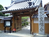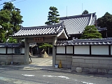 {右}如林山 真徳寺 [浄土宗] 水口町城内3-22 少し先に昭和51年寺名石柱と山門の説明立札があり右折すると正面。慶長2年(1597)願誉が小庵を建て道場としたのが起こりで天台宗だったが後に改宗。帰寿の時に堂宇を再建し如林山真徳寺とした。本尊は阿弥陀如来座像(高さ189cm)で漆箔仕上げ寄木造。本堂の欄間には1間に25列4段の100体ずつ10間に嵌め込まれた千躰仏がある。素焼に金箔を貼った座像(高さ20cm)1体ごとに「水口真徳寺千躰仏量寿」とあり量寿は19世的寿の妻とされる。本堂内には西国33ヶ所の観音菩薩像もある。山門は水口藩士・蜷川家の武家屋敷長屋門の移築で前左に説明立札、内側左に石仏7体の祠、右に太鼓がある。本堂前左に水子地蔵。境内左には6字名号碑、6地蔵。境内右の客殿、庫裏は平成13年築。 |
