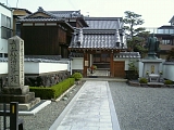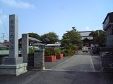 {左・寄}(南道)水口山 蓮華寺 [真宗高田派] 水口町松栄2-40 「永原町」石柱がある左の東部コミュニティセンター(神明3-12)を過ぎ少し先で水口中央商店街となる。少し先の十字路の先左の「中嶋町」石柱と小祠がある駐車場角を左折すると正面。推古天皇の代の27年(619)に聖徳太子が創建したと伝わり享保9年(1724)再興された。山門入って左に鬼瓦、砂山地蔵堂。本堂右の書院の唐破風玄関は水口城の建物の1部を再利用。所蔵する平安時代作の木造阿弥陀如来立像は市指定文化財。小堀遠州作の庭が境内にあったとされ現存する石が1つだけ石垣に囲まれて境内左にある。墓地には初代水口藩主・加藤明友の次男で沢海藩主の溝口政親の墓。芭蕉が時々泊まっており水口で詠んだ句碑は大岡寺にある。山門前を左に行った突き当たりには日雲宮がある。 |