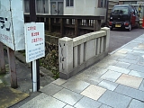 {左}水口宿本陣跡 少し先にある。元和元年(1615)から明治まで鵜飼伝左衛門が営んでいた本陣跡。建物は門玄関付平屋で間口は一般家屋の3軒分あったが明治以降に撤去された。竹垣風の柵で囲まれた細い道の入口右に「作坂町」石柱、入ったすぐ右に「東海道水口宿」説明板。奥に進むと左に本陣の説明碑があり奥の正面に昭和10年(1935)建立「明治天皇聖蹟」石柱がある。明治天皇は明治元年(1868)9月(食事)12月(休憩)明治2年3月(宿泊)の3回立ち寄った。左にも大正4年(1915)建立「明治天皇行在所御旧跡」石柱がある。他には桜が2本あるのみ。本陣の手前左には西村脇本陣があった。少し先左には「桔梗屋文七」の看板がある紅殻格子の建物があり現在はクリーニング店となっている。 |
