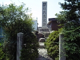 {右}雙龍山 妙沾寺(みょうてんじ) [日蓮宗] 水口町西林口4-16 右折するとひまわり薬局の先にある。昭和2年(1927)神山長兵衛が開基した。境内中央に大正15年(1926)建立の大きな題目塔がある。境内左には石仏1体を安置する小祠がある。この付近には江戸時代には水口宿の西見附(京口)があった。少し進むと両側に大正6年(1917)創業の美冨久酒造(水口町西林口3-2)がある。左の事務所内に店舗も併設しておりその先の白塗海鼠壁の建物の先には小祠もある。 |