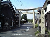 {右}柏木神社鳥居 酒造すぐ先の十字路にある。昭和3年(1928)建立で手前に明治34年(1901)灯籠、左前に昭和10年「馬場改修記念献燈」石柱、右前に大正11年(1911)県知事・堀田義次郎揮毫の神社名石柱。神社(水口町北脇187)は右折300m先。途中左に御旅所、その先左の畑の中に「柏木神社神饌田」石柱もある。白鳳元年(672)この付近の柏木御厨の鎮守として創建されたとされ主祭神は大己貴命(大国主命)。元は日吉宮と称していたが頼朝が鶴岡八幡宮の分霊・誉田別命(応神天皇)を合祀して以降は若宮八幡宮と呼ばれた。承応4年(1655)水口城城番だった常陸牛久藩主・山口弘隆が灯籠、手水石を寄進し水口藩成立後は歴代藩主の祈願所となり明治4年(1871)に柏木神社となった。境内社に稲荷社、大行社。 |
