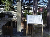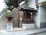 {右}高札場 隧道入口左にある。小さな高札場が復元されており正徳2年(1712)「人馬」関連とその下に正徳元年の「火付」関連「親子兄弟」関連の高札が掲げられている。その下に「草津宿の高札場」木製説明板もある。江戸時代には追分道標の前に高さ1丈3尺(3.9m)幅1丈5尺(4.5m)の高札場が高さ80cm石垣の上に建てられ6〜7枚の高札が掲げられた。東海道名所図会や伊勢参宮名所図会にも屋根付で柵に囲まれた高札場が描かれている。高札は草津川の堤防が決壊しそうな場合などは取り外して立木神社に避難する取り決めになっていたと言う。左には平成17年設置の時計柱、平成2年再建された延命地蔵尊の小祠もある。地蔵尊左の石段を登って行くと隧道上に出ることができる。 |