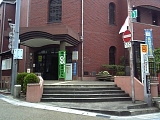 {左}草津公民館 草津1-4-33 突き当たり左角にある煉瓦外壁の建物。この地には明治20年(1887)旧:大路井村の戸長・長谷庄五郎の寄付で栗太郡最初の洋風煉瓦造建物である草津警察署が建てられた。煉瓦はフランス積みで屋内には螺旋階段、2階正面にはバルコニーもあった。建物は昭和29年(1954)まで警察署、後に商工会事務所などに利用され昭和56年に建替えられた。公民館の入口両脇には旧建物の煉瓦が使用されている。突き当たり手前の公民館前には「草津川ずい道(トンネル)の由来」説明板、草津町道路元標もある。東海道は突き当たりを左折しここからは中山道と共通の道となる。現在はここから本陣商店街となっている。 |