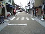 筋違い(筋交い・筋かい) すぐ先の変形十字路。左の京八玩具(草津2-8-25)と喫茶トリコロール(草津2-10-27)の間の道よりも右の京栄玩具店(草津2-5-17)とさのや化粧品店(草津2-4-11)の間の道が少し先で東海道に接続している。十字路ではなく街道に対して少しずれて交差しており「筋違い」と呼ばれ防衛の意味があった。江戸時代は草津宿内にあった24小路はすべて筋違いになっていたとされ現在はここ以外に数箇所のみが残っている。 |