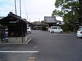 {右・寄}八幡神社跡 少し先の右に昭和3年(1928)「野路在郷軍人用地」石柱がある角を右折して行くと右にある。敷地的には願林寺の隣で「願林寺南側駐車場」になっており隅に昭和8年建立の「八幡神社舊跡」石柱と昭56年設置の説明板がある。この地にあった八幡神社は大正5年(1916)本殿が新宮神社に移築され境内社となった。拝殿は玉川山常徳寺[曹洞宗](野路8-1-11)に移築されている。創建は寛平元年(889)で祭神は応神天皇。東海道沿いにあったため信仰を集め一時期は敷地が3haあったと伝わる。この先は古い民家もある狭い道を進んで行く。 |