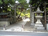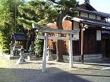 {右}立木神社 草津4-1-3 少し進み立木神社前交差点で県道141号線に出るとカラー舗装が終わる。渡って伯母川(志津川)を立木橋で渡ると少し先。神護景雲元年(767)創建。春日大社に鹿島神宮を勧請する途中に立寄った地とされ鹿島の柿の木を植え根付いたことから立木神社と称した。祭神は武甕槌命。宝亀8年(777)光仁天皇が社殿を造営、長享元年(1487)鈎陣所の足利義尚が四脚門を寄進、正保2年(1645)膳所藩主・石川忠総が社領を寄進した。境内には明治初期まで神宮寺があった。境内右に昭和14年(1939)宮城遥拝所、昭和15年皇太神宮遥拝所、平成2年建立今上天皇歌碑、ゑびす神社、英霊殿、三社神社、天満宮、松尾神社。社殿右に大将軍神社など7社、社殿左に多賀神社など5社。他に弁財天、稲荷神社など。 |