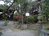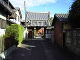 {右}布薩山 常善寺 [浄土宗] 草津3-9-7 松利昆布舗の隣。天平7年(735)良弁が創建し宝亀8年(777)光仁天皇から寺号を賜った草津市最古の寺院。本尊・木造阿弥陀如来座像と脇侍の観音菩薩立像と勢至菩薩立像は明治33年(1900)国重要文化財で台座に健長5年(1253)康元元年(1256)の墨書きがある。室町時代には歴代将軍により保護され将軍宿舎にもなり草津御所と呼ばれた。最盛期は敷地は約4000坪(1万3千平方m)あり塀をめぐらし大伽藍の寺だった。家康、秀忠も宿泊し関ヶ原の勝利後はこの寺で捕らわれた石田三成と対面したとも伝わる。現在の鉄筋コンクリートの本堂は昭和43年築。境内はほとんどが駐車場で境内左に木幹地蔵の祠があり石仏10数体が安置。境内右には浄土宗滋賀教区教務所、昭和44年観音石像、庭園。 |