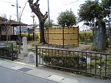 {右}清宗塚 少し先。民家(遠藤家)の塀に「平清宗」「清宗」説明板があり庭を進んだ右奥の池の奥に五輪塔と説明立札がある。記帳書箱内に説明書もある。五輪塔左には稲荷神社の祠も2つある。元暦2年(1185)壇ノ浦で敗れ捕らえられた平宗盛、清宗親子は鎌倉に護送され京へ戻る途中に斬首された。吾妻鏡には東山道篠原宿(現:野洲市篠原)で橘馬允公長が宗盛を、野路宿口にて堀弥太郎景光が清宗を斬首したとありこの地に清宗の供養碑が建てられた。篠原にも宗盛、清宗親子の胴塚がある。民家の門左には市保護樹木であるアベマキ(樹齢150年幹周2.6m高さ17m)エノキ(樹齢100年幹周2.6m高さ18m)もある。遠藤家は教善寺を開基した遠藤権兵衛の子孫で現在は裏にある南草津病院を経営している。 |