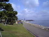 {右・寄}御殿浜跡(膳所・晴嵐の道) しばらく進むと左に説明なし付近案内地図があり向かいを右折すると80mで琵琶湖に出る。この辺りは瓦ヶ浜と呼ばれ万治3年(1660)頃に膳所藩主・本多俊次が瓦ヶ浜御殿を造営してからは御殿浜と呼ばれた。昭和8年(1933)には御殿浜水泳場も開かれたが埋立てなどで姿を消し現在は大津湖岸なぎさ公園の1つ「膳所・晴嵐の道」となっている。大津湖岸なぎさ公園は晴嵐から浜大津付近の湖畔4.8kmに渡り整備された湖岸公園で膳所・晴嵐の道、サンシャインビーチ、市民プラザ、なぎさのプロムナード、打出の森、おまつり広場の6つからなる。左にしばらく行ったサークルK大津御殿浜店(御殿浜20-17)向かいには側面に説明がある昭和59年建立の「御殿浜」石柱もある。 |