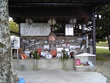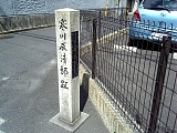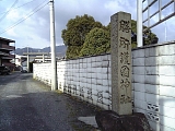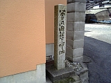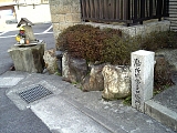 {左・寄}赤埴勝政邸跡 中庄1-3-5 しばらく進み東海道は右に音羽軒(中庄1-1-6)がある十字路を右折する。右折せずに左折ししばらく行くと右の民家の門左に側面に説明がある「赤埴勝政邸趾」石柱がある。途中右には石仏の小祠もある。寛永18年(1641)に生まれた赤埴所左衛門勝政は赤穂浪士・赤埴源蔵(重賢)の叔父にあたり膳所藩最初の儒学者だった。享保2年(1717)に没し墓は膳所藩の支藩・河内西代藩領だった大阪府河内長野市の金光山明忍寺[真言宗御室派](原町2-2-8)にある。次女は寒川辰清の義母の父にあたる寒川辰成の妻。曾孫の重助政温は現在の膳所高校(膳所2-11-1)の地に文化5年(1808)設置された藩校・遵義堂(じゅんきどう)の初代学頭となった。 |