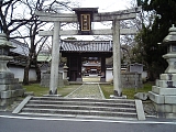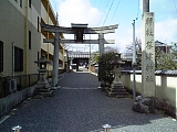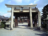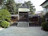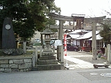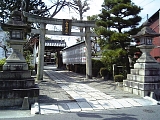 {左・寄}膳所神社 膳所1-14-14 十字路を左折して行くとある。天智天皇が大津に遷都した際にこの地を御厨所に定め天武天皇の代の6年(677)食物の神である豊受比売命を勧請し創建。豊臣秀頼、家康などが神器を奉納したという記録が残り膳所藩主も社領や社殿を寄進した。明暦元年(1655)築とされる表門は膳所城本丸と二之丸間にあった本丸大手門で明治3年(1870)に移築され大正13年(1924)国重要文化財。薬医門で屋根は本瓦葺で軒丸瓦に藩主・本多氏の立葵紋がある。境内右の北門、境内左の南門も膳所城の門の移築。本殿左奥に明治35年(1902)「式内社膳所倭神」石碑、右奥に境内社、「磨大神」などの石碑。境内右には神輿庫、境内左には手水石、ブランコなど。灯籠は文化12年(1815)など。狛犬は明治36年(1903)。 |