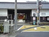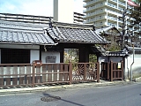 {右}膳所城勢多口総門跡 御殿浜20-37 東海道に戻り少し先の民家前に昭和46年石柱がある。江戸時代にはここに門がありここから城下に入った。門は大阪府泉大津市松之浜町の細見邸(現:細見記念財団所有地)の門に移築され現存する。 松江城(島根県)、高島城(長野県)と並ぶ日本3大湖城の1つで大津城、坂本城、瀬田城と並ぶ「琵琶湖の浮城」の1つでもあった名城・膳所城は明治3年(1870)の廃城で城門の多くが若宮八幡神社、篠津神社、膳所神社などに移築された。石柱の数m左には木製屋根が付いた石仏がある。その左の駐車場には藩役人が通行人を監視した番所の建物が平成18年まで現存していたが解体された。東海道はここで左にカーブし膳所商店街を進む。少し先左には1階に紅殻格子やばったりがある民家がある。 |