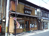 {左}亀屋廣房 本丸町3-7 十字路を右折し少し先右の多田歯科医院(中庄2-20-12)前に石仏3体安置の小堂があり少し先。文化元年(1804)創業の京都の亀末廣から暖簾分けし昭和16年(1941)創業した菓子屋。江戸時代に名物だったが途絶えた兼平餅を今井兼平没後800年を期に復刻し予約販売している。もち粉にヨモギと黒砂糖を入れた求肥で大納言小豆の粒餡を包みきな粉をかけた餅で元は盛越川近くにあり明治初期に廃業した三軒茶屋の1つ小田原屋(駒村家)で売られていたもの。芭蕉や大石内蔵助、勝海舟も食べたとされる。三軒茶屋は粟津松並木の道が長く物騒だったため藩の勧めで松並木の 中ほどに置かれた3軒の茶屋で他に酒が中心の伊賀屋(稲枡家)湖魚料理の近江屋(青山家)があった。9時-16時、日休。