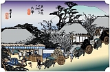 大津宿 本陣2脇本陣1旅籠71家数3650人口14892[天保14年(1843)] 古くから京都の玄関口として栄え中大兄皇子(天智天皇)が遷都し大津京を開き壬申の乱の舞台にもなり奈良時代は古津と呼ばれた。延暦寺創建、園城寺再興で仏都としても賑わい戦国時代は重要拠点として重視され天正14年(1586)には秀吉が大津城を築き城下町にもなった。江戸時代には天領として大津代官が支配し琵琶湖の水運を利用した近江商人の町として発展し町数が100あったことから大津の賑わいぶりは「大津百町」と称された。東海道の他に中山道、北陸道の宿場でもあり53宿場中で最大規模の宿場。名産は大津算盤、大津絵、大津針。明治になると大津県(現:滋賀県)の県庁も置かれた。 |