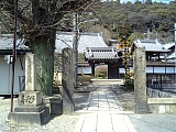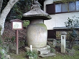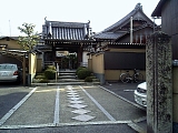 {左}月見山往生院 西方寺 [浄土宗] 松本1-5-13 すぐ先の2叉路も左を直進し少し先左の民家に石仏2体の祠、さらに少し行くと小さな常世川を渡る左に地蔵があり渡って1軒置いた先。文禄元年(1592)春甫が創建した。街道沿いに明治30年(1897)寺名石柱。参道右に法然の幼少時の姿である「せいし丸さま」銅像。山門入って左に手水石。境内左に茶室「無量寿庵」、池付き庭園、灯籠、弁財天がある。本堂左には水子地蔵と60体ほどの石仏群もある。大津33観音霊場第16番。この付近の寺は門前や境内が貸駐車場になっていることが多い。寺の少し先左にはばったりがある民家がある。 |