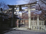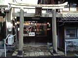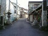 {右・寄}蛭子神社 中央2-6-30 すぐ先の十字路を右折すると左に昭和7年(1932)石鳥居がある。鳥居後ろの門扉に鍵がかかり社殿は奥にある。本殿は一間社流造。境内左には小祠、社殿前には灯籠1基もある。創建時期は不明だが榊宮神社(坂本4-9-57)の倒れた神木から神像を作り祀ったのが起こりと伝わる。祭神は蛭子尊。古くは胡神社、夷神社とも書いた。付近はこの神社があることから江戸時代から昭和40年までは蛭子町と呼ばれた。幕末の円山派画家・中島来章による文政7年(1824)「六歌仙」絵馬を所蔵する。日吉大社(坂本5-1-1)の祭礼・日吉山王祭で4月3日に行われる大榊神事では天孫神社へ大榊が渡御する途中にこの神社に立ち寄る。少し進むと右には古い町家を改装した居酒屋・旬遊あゆら(中央2-6-39)がある。 |