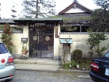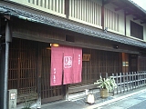 {左}大津魚忠 京町2-4-10 斜め向かい。湖魚などを使った懐石料理店。明治38年(1905)呉服商の住居として建てられた建物は平成14年国登録有形文化財。木造2階建、瓦葺、建築面積169平方mで1階は連子格子で2階は虫籠窓。建物の壁には「登録有形文化財」と「煌めき大津賞都市景観部門受賞」のプレートが飾られている。煌めき大津賞は「活動部門」と「都市景観部門」があり昭和62年から平成16年まで毎年選出が行われた。平成17年からは「活動部門」のみ継続し市民活動をたたえる煌めき大津環境賞となっている。魚忠は明治後期創業で近くの別の場所にあったが平成8年に取壊し寸前だったこの建物を買取り移転した。 本屋背後の庭は7代目小川治兵衛(植冶)の作。11:30-22:30水休。懐石料理7350円〜。