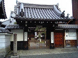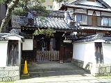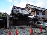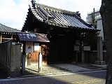 {右・寄}近松山 顕証寺 [浄土真宗本願寺派] 札の辻4-26 京町一丁目南交差点を渡り少し先右の角に延享3年(1746)「蓮如上人近松御舊跡」石柱があり右折正面。応仁3年(1469)大津に移住した蓮如が園城寺から別院の近松寺(逢坂2-11-8)の寺領を分与してもらい創建し親鸞像を安置したのが起こり。本尊は阿弥陀如来。別名近松別院、近松御坊と呼ばれ寺を町や支院が取り囲み大津代官の支配を受けない寺内町を形成していた。門右に大正14年(1925)「蓮如上人近松御舊蹟」石柱、門左には昭和57年「旧寺内」茶色説明柱。門前の灯籠は寛政元年(1789)。本堂右前に樹齢150年のイチョウ、手水石。境内左に近松保育園、平成20年西本願寺24世即如手植えの垂れ梅。寺の建物は隣に軍病院があったため昭和20年全て取り壊され現在の建物は昭和56年築。 |