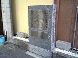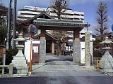 {右}水上山 妙光寺 [日蓮宗] 逢坂2-3-7 少し進み右に少し入ったところに門柱がある。その左には土台に寺名が入った享保21年(1736)題目塔とイチョウもある。門柱の先の妙光寺踏切で京阪電鉄京津線の線路を渡ると山門があり境内。天正元年(1573)日性が創建した。山門前左に安政4年(1857)「妙見大菩薩」石柱。山門入って右に鐘楼。境内左に妙見宮、三社大明神、石仏群、井戸跡などがある。妙見宮前の鳥居は大正12年(1923)、灯籠は元禄13年(1700)と正徳5年(1715)。三社大明神左に文久元年(1861)手水石、嘉永7年(1854)題目碑もある。 |
