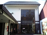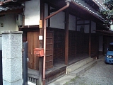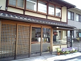 {左}柴山商店 京町1-3-25 交差点で県道7号線を渡り少し先左に1階が連子格子で2階が虫籠窓の民家があり、少し先にある。寛延元年(1748)創業の傘、提灯の店。建物は明治5年(1872)築の町家を大正年間、昭和初期の改築を経て平成13年に現代風に大改装し店舗兼住宅にしている。町家の風情の維持と屋内の温度環境改善を両立させるためOMソーラーを目立たないように導入するなどの工夫をしている。店内では今も手作りの提灯を扱っている。向かいの吉田医院(中央1-2-9)前には昭和57年「旧京町」茶色説明柱がある。 |