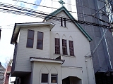 {左}大津聖マリア教会 京町1-2-21 少し先。日本聖公会の京都教区に属する教会。大津では伝道師・永田保次郎が明治20年(1887)より借家にて宣教を始めていたが、大津講義所として1組の母子の洗礼を行った明治25年(1892)4月17日を宣教開始日としている。後に淡海基督教会、大津基督教会、大津聖公会などに改称し大正7年(1918)大津聖マリア教会となった。現在の鉄筋コンクリート造2階建の礼拝堂は昭和6年(1931)築。牧師館は昭和57年築。明治45年(1912)より教育事業として清心幼稚園を併設している。日本聖公会は全国に11の教区があり、京都教区の範囲は9府県(京都府、大阪府の1部、 奈良県、和歌山県、三重県、滋賀県、福井県、石川県、富山県)にまたがる。教会数は42あり11教区の中では最も多い。