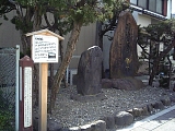 {左}大津宿本陣跡 少し先の滋賀労働局(御幸町6-6)入口の先に説明立札、「八町通」茶色説明柱、共に昭和9年(1934)建立の石碑2基がある。大塚嘉右衛門本陣(大坂屋)跡で3階の楼上からの琵琶湖の眺めは絶景だったと伝わる。建物は明治6年(1873)から逢坂小学校(音羽台6-1)の前身である鶴里学校(滋賀郡第6区第9小学校)として使用された。石碑は大きい方が公爵一条実孝書「明治天皇聖跡」碑で小さな方には天皇や皇族が立寄った日付が刻まれている。この通りの両側には多くの旅籠屋がありもう1軒の本陣である九左衛門本陣(肥前屋)や市右衛門脇本陣(播磨屋)、問屋場もあったが場所は特定できない。すぐ先の御幸町交差点左の千寿美容室(御幸町1-29)前には大津宿本陣跡の説明付き付近案内地図もある。 |
