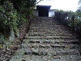 {右・寄}青龍山 安養寺 [西山浄土宗] 左京区粟田口山下町8 橋を渡り緩やかな石段を登ると共に大正15年(1926)建立の鳥居と灯籠1基がある3叉路があり左を登ると山門。慈覚大師が延暦寺別院として創建した一切経堂が起こり。応仁の乱で焼失し延徳年間(1489-92)比丘尼智照が現在地に庵を建て復興し天正18年(1590)道観(永養)が改宗し安養寺となり明治以降に光明寺末寺となった。本尊は恵心僧都作とされる阿弥陀如来像。慈覚大師像も所蔵する。3叉路真ん中の道を進むと左に別の門もある。本堂右の不動堂に石造不動明王立像があり大日山(旧:東岩倉山)山頂にあった観勝寺大日堂のものとされ東巌倉不動明王と呼ばれる。他に境内には共に天保6年(1835)の手水石と百度石、神社小祠、井戸跡など。3叉路の真ん中を直進すると市営大日山墓地。 |