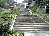 {右}日向大神宮・安養寺入口 この付近は山科区、東山区、左京区が入り組んだ地域になっている。浄水場向かいの京栄技研左の石段上には大日如来堂があり大小含めてたくさんの石仏が安置されており少し先に昭和5年(1930)鳥居、大正2年(1913)「式内日向大神宮」石柱、年不明の灯籠がある。左には昭和6年「青龍山 安養寺」石柱、年不明の「市営大日山墓地」石柱もある。鳥居くぐってすぐ右に大正4年の鳥居敷石寄付者碑。その先の石段を登ると琵琶湖疎水に架かる大正12年(1923)竣工の大神宮橋があり手前には左が安政6年(1859)右が嘉永5年(1852)常夜燈がある。橋を渡り進んでいくと日向大神宮や安養寺に通じる。 |