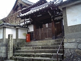 {左・寄}華頂山 良恩寺 [浄土宗西山禅林寺派] 粟田口鍛冶町7 交差点を左折し細い道を進み突き当たりを左折すると右に山門がある。非公開寺院。永禄年間(1558-70)の創建。本尊は阿弥陀如来座像で小野篁の作と伝わる。背後の華頂山にあった火葬場の管理をしていたとされ地蔵堂に安置される伝教大師作と伝わる地蔵は火葬場に送られる死人に引導を渡すという意味で導引地蔵と呼ばれた。付近に住む茶人・粟田口善法に秀吉が贈ったという伊勢国の鋳物師・辻越後守家種の作の手取釜を所蔵する。江戸後期の国学者・伴蒿蹊による寛政2年(1790)刊「近世畸人伝」には秀吉が利休に命じて善法が持っていた釜を譲るよう説得させたが善法が拒んで壊してしまったので利休が見た記憶を頼りに釜を2つ造らせ1つは秀吉自身が使用し1つは善法に贈ったとある。 |