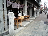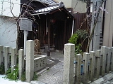 {右}辻留 京都本店 三町目16 少し先にある。「茶懐石 辻留 出張専門」看板がある建物。明治35年(1902)辻留次郎が創業した懐石料理の名門。留次郎は裏千家13世家元・圓能斎宗室に茶懐石を学び料理人が出向いて料理を作る仕出しスタイルを確立した。昭和初期から裏千家の出入り料理店として正月の初釜などの行事で茶懐石を担当する。本店は出張専門で客席はないが昭和29年(1954)開店した東京赤坂店(港区元赤坂1-5-8)は客席もある店舗になっている。京都ではグランドプリンスホテル京都(左京区岩倉幡枝町1092-2)の茶寮に仕出しをしている他、京都駅ビル直結のジェイアール京都伊勢丹(下京区東塩小路町657)地下2Fで弁当(5,250円〜)を販売している。建物の右前には昭和42年改修の離厄地蔵尊の小祠がある。 |