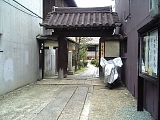 {左・寄}城安寺 [浄土宗] 南西海子町424 村山造酢の手前の道を左折して行くと左にある。創建時期は不明で元は伏見にあり寛永6年(1629)に現在地に移転してきた。それ以前のこの付近は青蓮院の土地で畑だった。境内は狭く山門、本堂、庫裏のみ。慶応3年(1867)3月20日には新撰組から分離した伊東甲子太郎ら御陵衛士15名が1泊した。甲子太郎の手記には分離後の宿舎がなかなか見つからなかった様子が書かれており三条付近を数日探し城安寺にようやく1泊できた。その後、五条橋東詰にあった寺(長円寺又は善立寺)を経て6月に高台寺塔頭の叢林山月真院[臨済禅宗建仁寺派](下河原町528)を屯所とした。 |