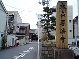 {右・寄}多宝富士山 要法寺 [日蓮本宗] 左京区法皇寺町448 その先の東山三条交差点から東海道は府道37号線となる。渡って少し先に昭和3年(1928)寺名石柱があり右折正面が寺。延慶元年(1308)日尊が開基した法華堂が起こり。天文5年(1536)に暦応2年(1339)創建の上行院と正平17年(1362)創建の住本寺が焼失したため天文19年に日辰が統合して再建し要法寺とした。本尊は十界曼荼羅。宝永5年(1708)焼失し現在地に移転。昭和25年日蓮宗から日蓮本宗が独立し本山となる。表門は享保9年(1724)西門は安政4年(1857)伏見桃山城跡からの移築とされる。安永3年(1774)本堂の左に天保元年(1830)開山堂、前に清涼池、右前に元文2年(1737)鐘楼堂、右に安政8年(1779)薬医門。境内右に明和8年(1771)鬼瓦、方丈。他に本地院、真如院など塔頭8院もある。 |