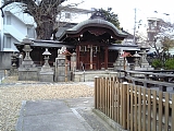 {左・寄}大将軍神社 長光町640 寺の向かい。村山造酢の真裏にあたる。桓武天皇が延暦13年(794)平安京を造営した際に都の4方に祀った大将軍神社のうちの1つとされる。祭神は素盞嗚尊。相殿には藤原兼家を祀る。境内社に荒熊稲荷社、東三條社(天満宮)、白龍弁財天など。境内中央に拝殿。稲荷社右に榎(樹高24m幹周3.1m)、本殿左に樹齢800年のイチョウ(樹高26m幹周4.1m)があり双方とも区民誇りの木に指定されている。境内には他にも榎やクロガモチなどの大木がある。古くは平家物語で源頼政が退治する鵺の住処「東三条の森」を思わせる深い森があり鵺の森と呼ばれていた。付近には兼家ら藤原摂関家の広大な邸宅・東三条殿があり藤原家由縁の天皇の里内裏にも利用されたが仁安元年(1166)焼失以降は荒廃した。 |