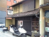 {左}村山造酢本社工場 東山区三町目2 すぐ先。「銘酢 千鳥」看板がある建物。備前岡山の池田藩士だった初代が享保年間(1716-36)京に移住し創業。酒造の傍ら酢や醤油も造っていたが次第に友禅染の色止め剤や京料理に欠かせない酢の需要が高まり主力となった。平成7年の阪神淡路大震災で被災した江戸時代の醸造蔵を近代建築で囲った平成9年築の現社屋は市都市景観賞市長賞を受賞。商標の「千鳥」は詠み人知らずの古歌「加茂川や 清き流れに 千鳥すむ」に由来する。主力商品の京酢「加茂千鳥」は米と水を原料とした米酢でまず原料となる酒を造るところから半年かけて醸造する。米酢と京の白味噌を用いた「都すみそ」、米酢に薄口醤油と柑橘果汁を加えた合わせ酢「甘露千鳥」もある。 |